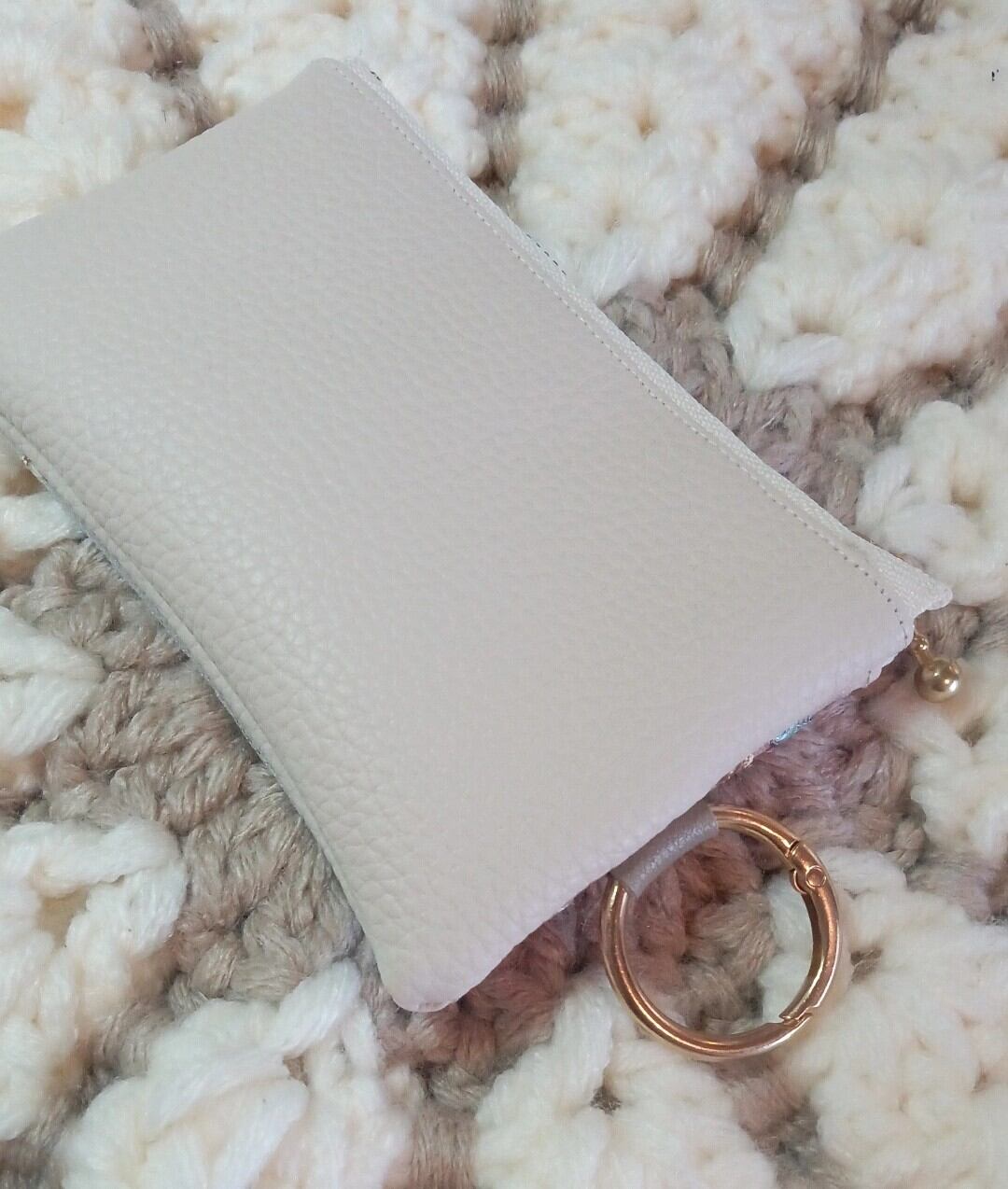 インド刺繍リボン×フェイクレザー ぐるぐるお花が推しポイント★ サイズ 横・約12cm 縦・約7.5cm