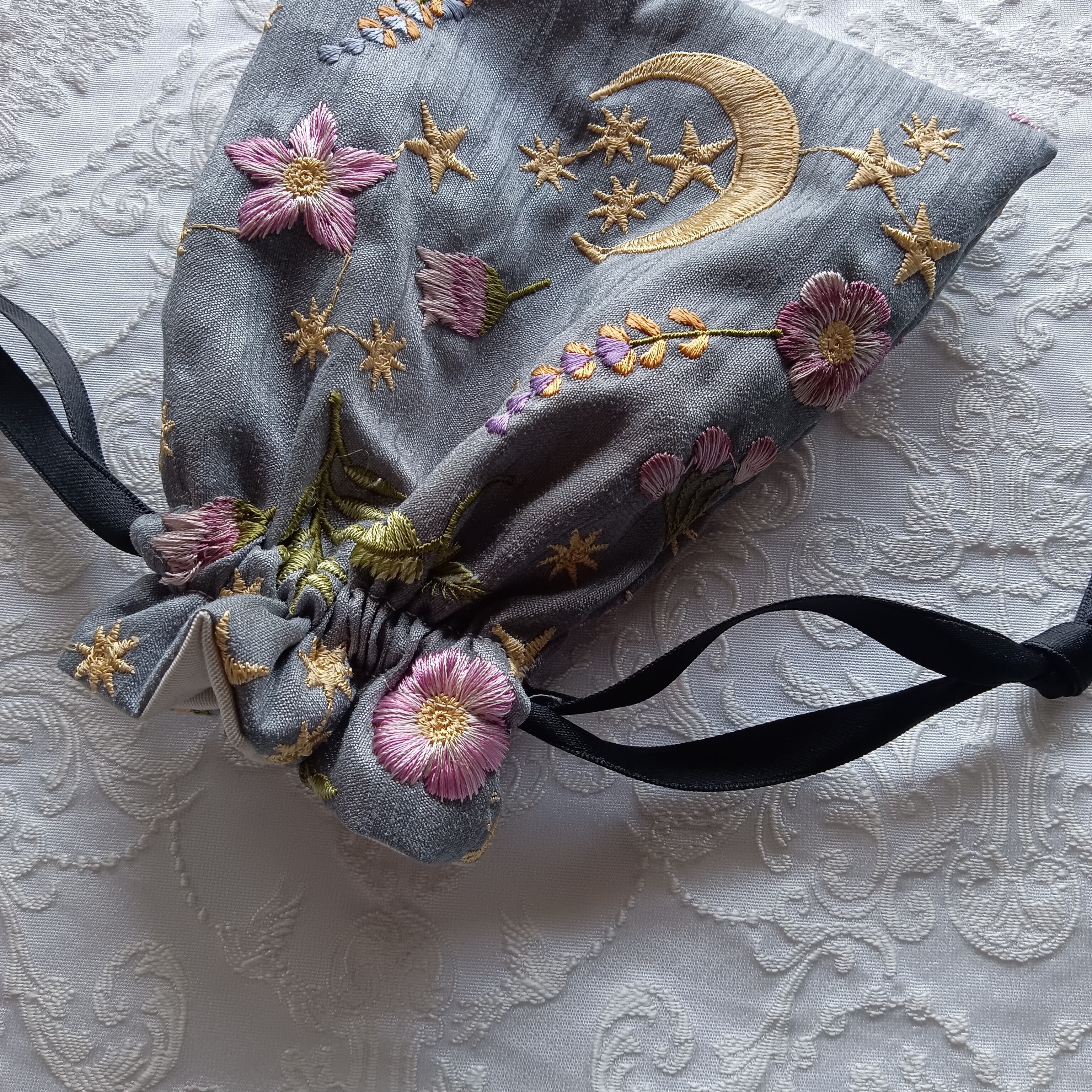 大人気刺繍生地の巾着です★ ちょっとした小物入れに(*^^*) サイズ 横・15cm 縦・18.5cm 紐より下・14.5cm